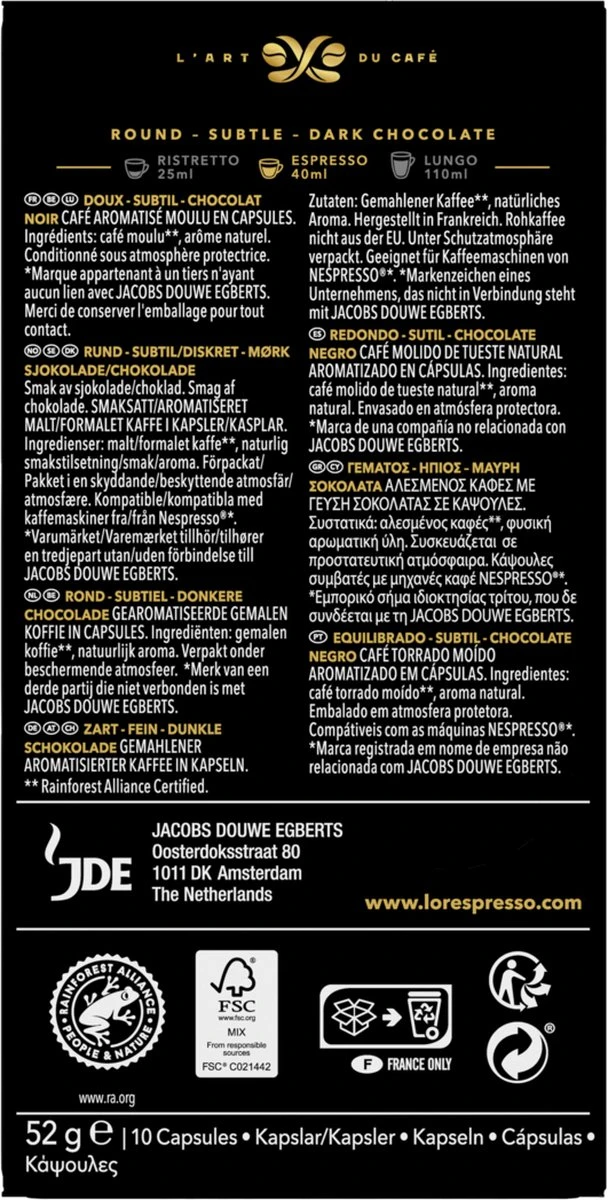 L’OR Espresso Chocolat Koffiecups – 10 X 10 Capsules